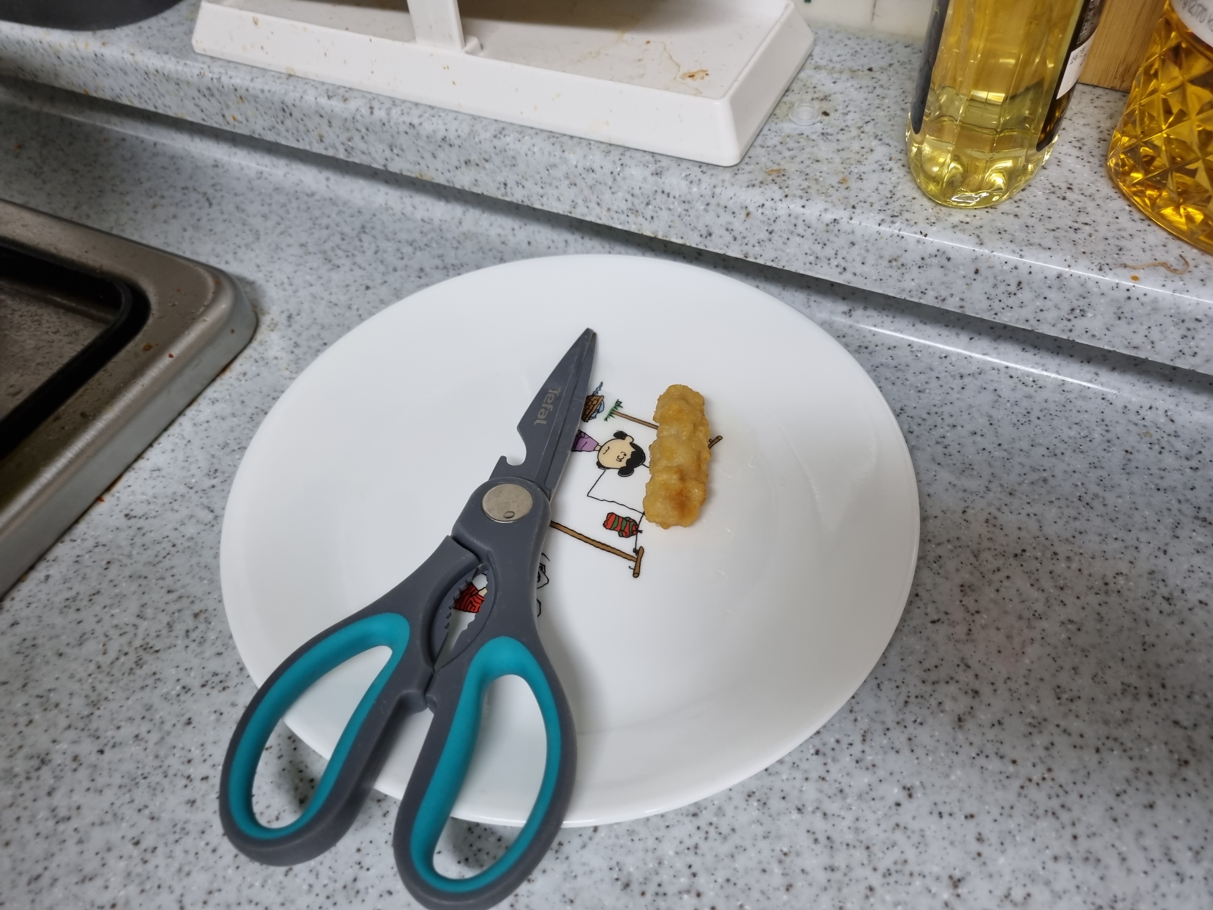 이쁜 빛깔이 나오면 치킨타올을 깐 접시에 담아요.